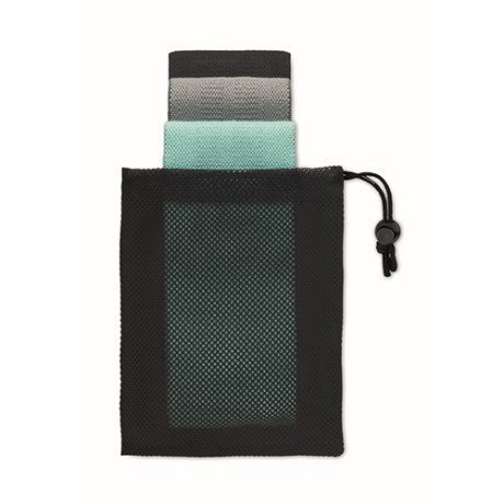 Set de 3 bandas de fitness presentado en bolsa de RPET.Pedido mínimo: 50 udes.
