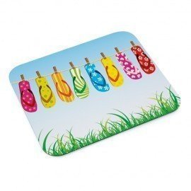 Alfombrilla de diseño rectangular en suave poliéster de vivos colores y con base antideslizante en silicona.