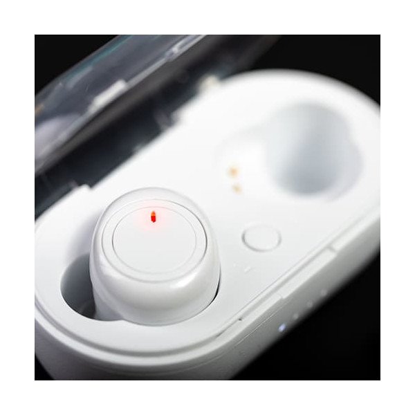 Auriculares intraurales en acabado blanco y conexión Bluetooth® 5.0.Pedido mínimo: 25 udes.