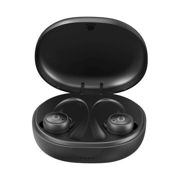 Auriculares Sport TWS160S con botón de control integrado en ambos auriculares. Siguiente y anterior canción, play, pause, contestar y rechazar llamadas, subir y bajar el volumen, y asistente de voz.
