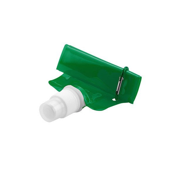 Bidón de 400 ml. de capacidad con cuerpo flexible en aluminio de vivos colores e interior en PET. Con tapón de seguridad a rosca y mosquetón metálico de transporte a juego.