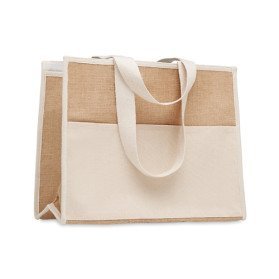 Bolsa de la compra en canvas y yute con interior laminado. Pedido mínimo: 50 udes.