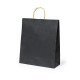 Bolsa de línea nature, fabricada en papel reciclado acabado en negro de 100 g/m2, con asas cortas reforzadas en tono natural y fuelle.