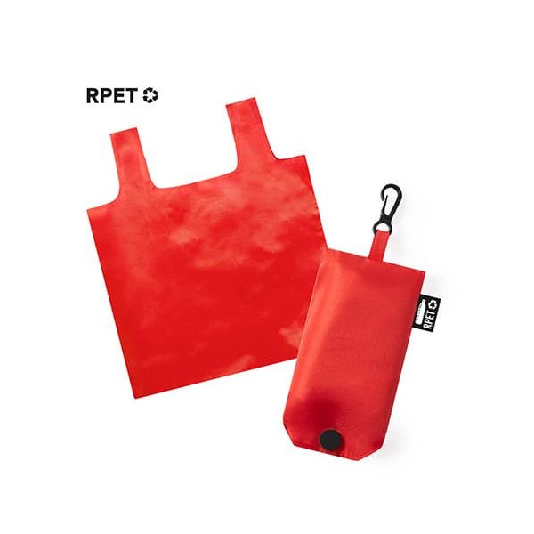 Bolsa plegable en suave poliéster RPET de plástico reciclado. Pedido mínimo: 100 udes.