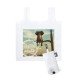 Bolsa plegable en suave poliéster RPET, elaborado a partir de plástico reciclado, para así fomentar la reutilización de residuos plásticos y ayudar a la sostenibilidad del planeta.