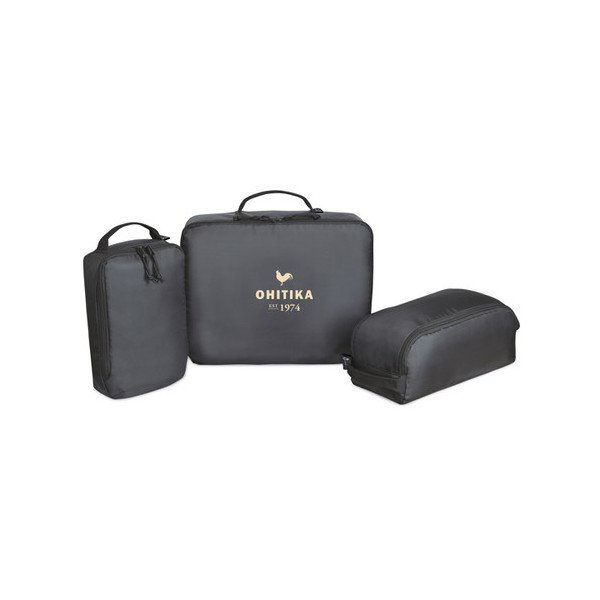 Juego de tres cubos de embalaje para mantenerte organizado mientras viajas. Asa de agarre superior en cada cubo de embalaje para una mayor comodidad al transportarlo. Los cubos de embalaje se apilan para guardarlos fácilmente cuando no se usan.