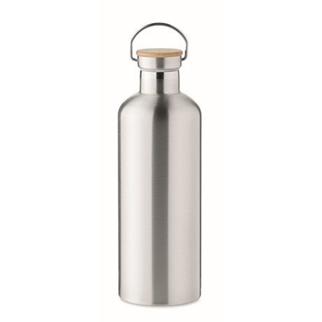 Botella de doble pared con tapa en bambú. Capacidad de 1.500 ml. Pedido mínimo: 25 udes.