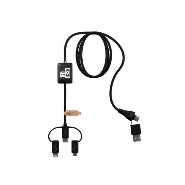 Cable de carga 6 en 1 de plástico reciclado/bambú con llavero Tecta.Pedido mínimo: 50 udes.