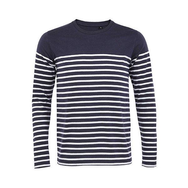 Camiseta rayada de manga larga de hombre. Pedido mínimo: 25 udes.