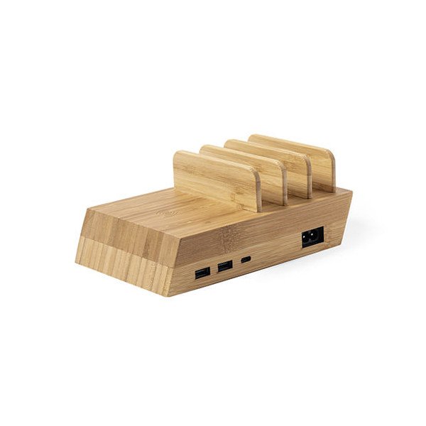 Estación de carga inalámbrica de línea nature, multidispositivo y de carga 10 W., capaz de cargar simultáneamente hasta 4 dispositivos.