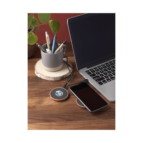Cargador inalámbrico de corcho con forma redonda.Pedido mínimo: 50 udes.