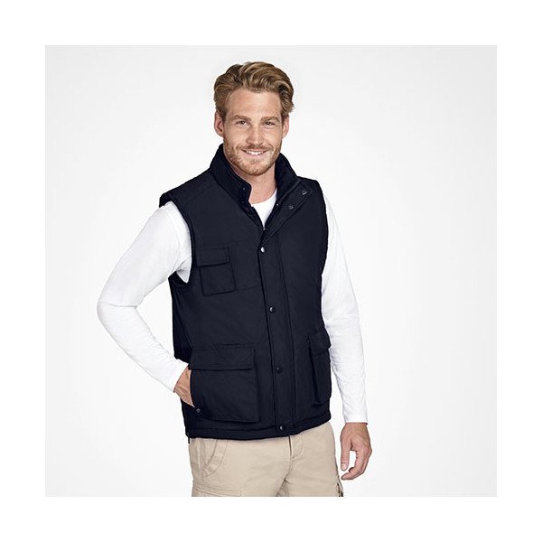 Chaleco soft Shell compuesto por 2 capas, con cremallera completa combinada, protector de barbilla y tirador.Pedido mínimo: 25 udes.