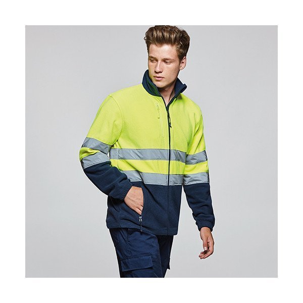 Altair es una chaqueta polar de alta visibilidad con dos bandas reflectantes, puños elásticos y ajustadores en el interior del bajo que harán que el frío no sea un problema cuando trabajes.