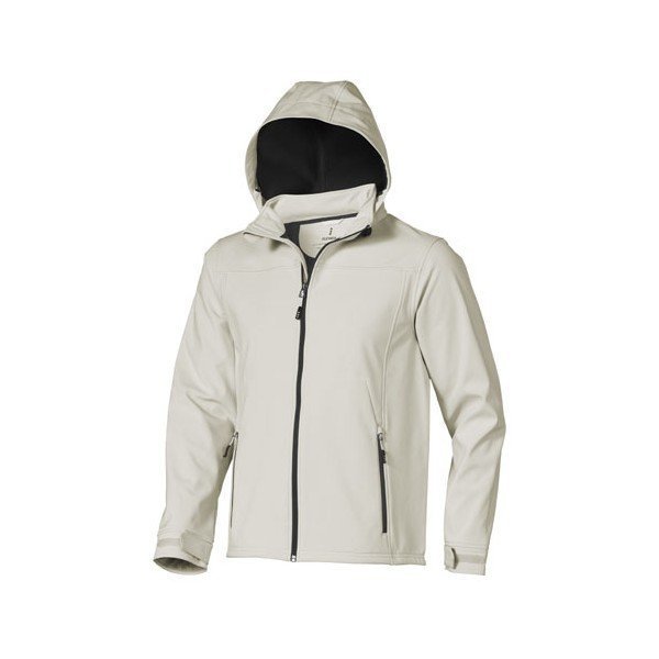 Chaqueta softshell Langley. Capucha extraíble con cordón elástico con topes.
