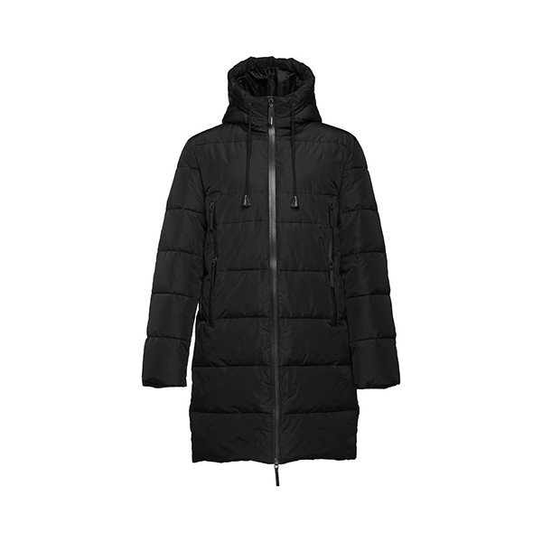 Parka larga acolchada (unisex) con capucha acolchada y forrada y puños elásticos. Parka cálida y robusta con costuras decorativas, con bolsillos interiores y frontales con cremalleras impermeables.