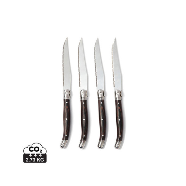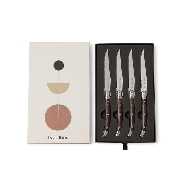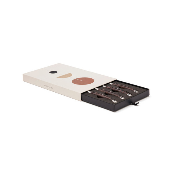 Un juego de cuatro cuchillos que puedes combinar fácilmente con tus tenedores en casa. Empaquetado en una exclusiva caja de regalo.