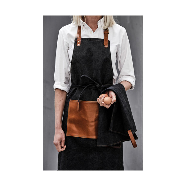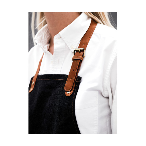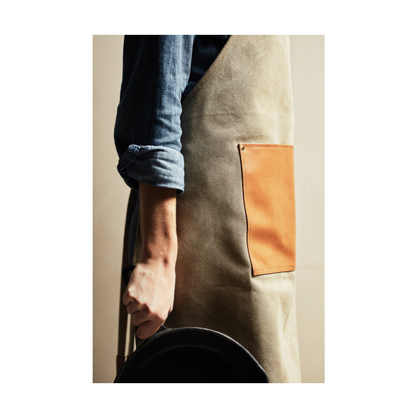Delantal robusto en lona lavada a la piedra de 500 g/m² con detalles en PU.