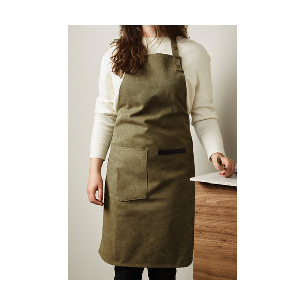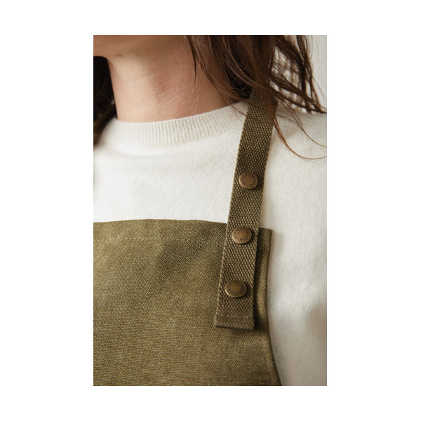 Delantal de cocina ajustable con 2 bolsillos delanteros en algodón/canvas orgánico de 340 gr/m².Pedido mínimo: 50 udes.