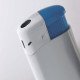 Elegante encendedor electrónico de cuerpo y cabezal blanco, con pulsador en diferentes colores surtidos.