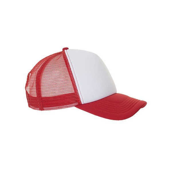 Gorra tipo trucker de 5 paneles 100% poliéster de suave acabado.Pedido mínimo: 100 udes.