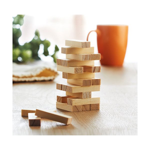 Juego de habilidad para los más manitas con 45 piezas de madera.Pedido mínimo: 50 udes.