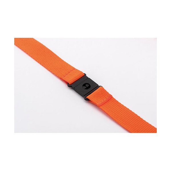 Lanyard en poliéster, con accesorio de seguridad y mosquetón metálico.Pedido mínimo: 100 udes.