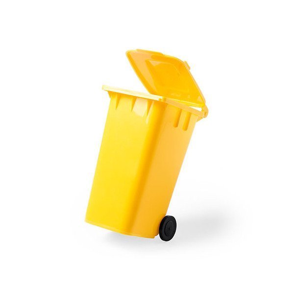 Portalápices con ruedas en forma de contenedor en variados colores y con tapa.