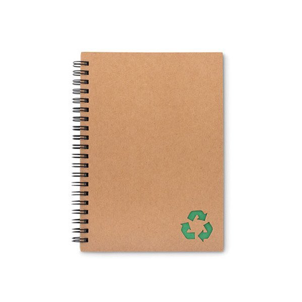 Libreta con hojas rayadas de papel reciclado y tapa de corcho.Pedido mínimo: 50 udes.