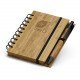 Bloc de notas de bolsillo en espiral con funda rígida de bambú. Con 70 hojas a rayas (140 páginas) de papel reciclado. Incluye soporte para bolígrafo y bolígrafo de bambú.