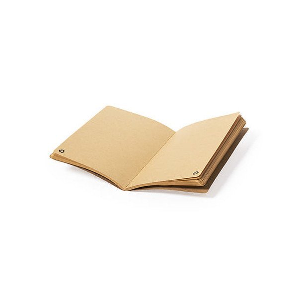 Libreta A5 con tapas blandas de cartón reciclado. Pedido mínimo: 100 udes.