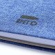 Tapas rígidas fabricadas en resistente material RPET 300D, elaborado a partir de plástico reciclado. Con original soporte para smartphone y tablet integrado en la portada y fabricado en caña de trigo.