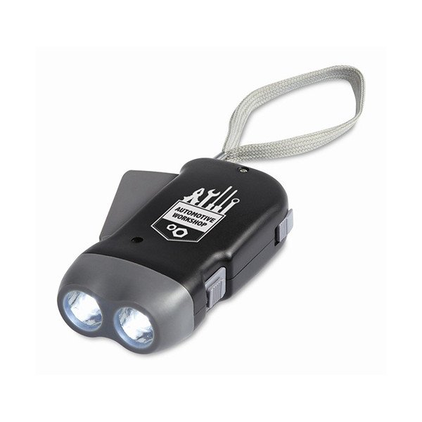 Linterna dínamo con 2 luces LED. Pedido mínimo: 100 udes.