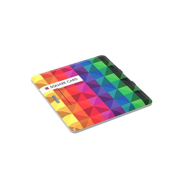 Memoria USB cuadrada con área de impresión del 100% por ambas caras. Grosor de tan solo 2,9 mm. que la hace perfecta para campañas de marketing directo. Escoja el chip Premium para más velocidad y garantía de por vida, o escoja el chip Basic como opción económica.
