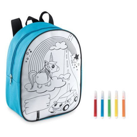 Mochila en poliéster 600D para colorear. Incluye 5 rotuladores.