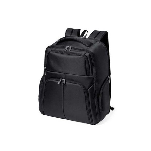 Mochila de calidad premium fabricada en resistente Nyon 600D de acabado en color negro.