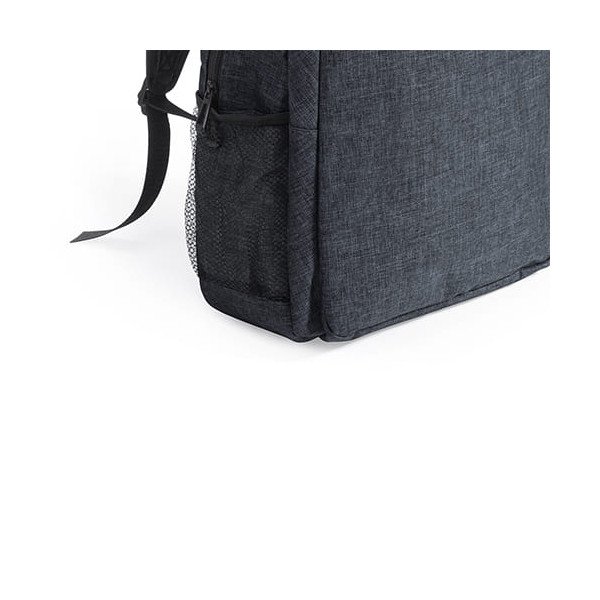 Elegante mochila de poliéster con detalles en polipiel.Pedido mínimo: 10 udes.
