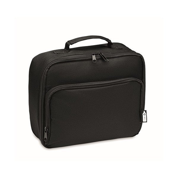Bolsa nevera para el almuerzo o la nevera en 600D RPET con asa de transporte.