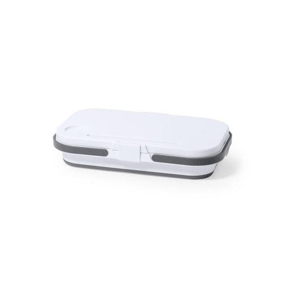 Fabricada en resistente material PP de acabado blanco, con capacidad de 16 litros. Tapa convertible en mesa mediante 2 patas plegables, con soportes para smartphone o tablet y bidón integrados. Incluye 2 asas de transporte plegables en gris. Una vez plegada ocupa poco espacio, ideal para un fácil almacenamiento.