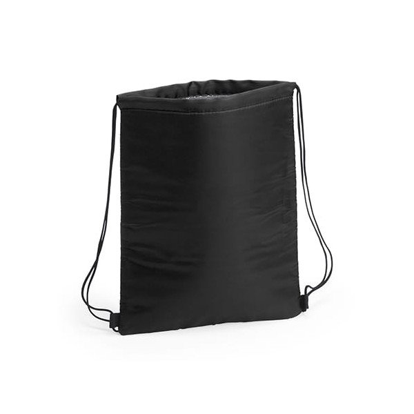 Con cuerdas autocierre en color negro y esquinas con refuerzo. Interior isotermo en acabado de aluminio.