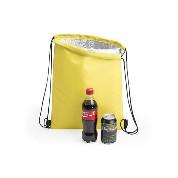 Mochila nevera de cuerdas en suave poliéster 210D de alegres colores y extensa gama de colores.
