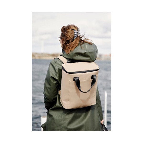 Una mochila nevera minimalista hecha en PU nobuk repelente al agua.
