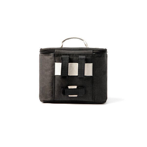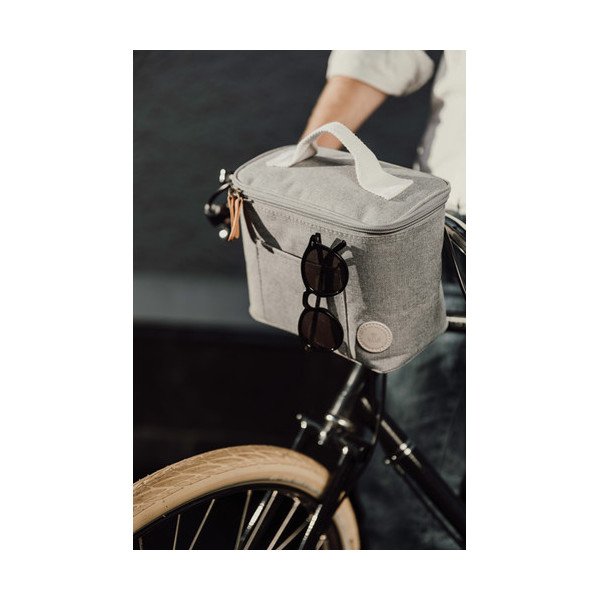 El interior se puede limpiar fácilmente y el grueso acolchado de PEVA mantiene la bolsa fría durante mucho tiempo. Con un cierre táctil en la parte posterior de la bolsa, puede asegurarla al manubrio de su bicicleta. La bolsa también tiene una cubierta ajustable, lo que garantiza un aislamiento óptimo del frío en todo momento.