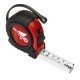 Cinta métrica de 5 m. en ABS de color rojo y negro. Incluye correa de mano para sujetarla y clip de metal plateado.