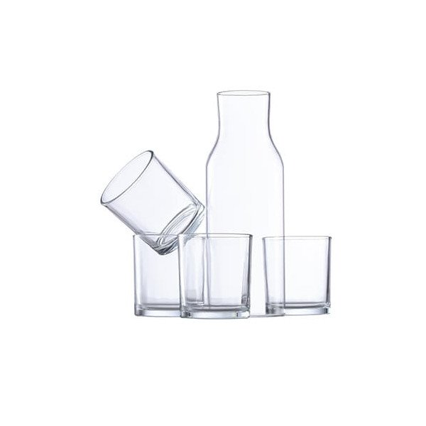 Incluye 4 vasos de 320 ml. y jarra de 1,35 l. Presentación en caja individual de diseño kraft.