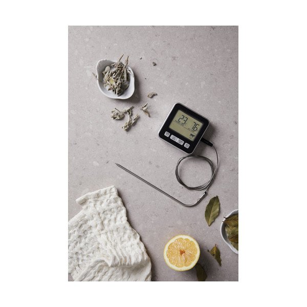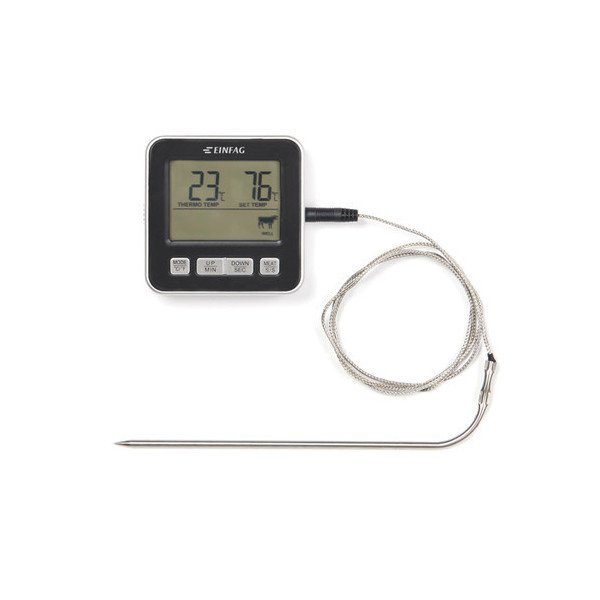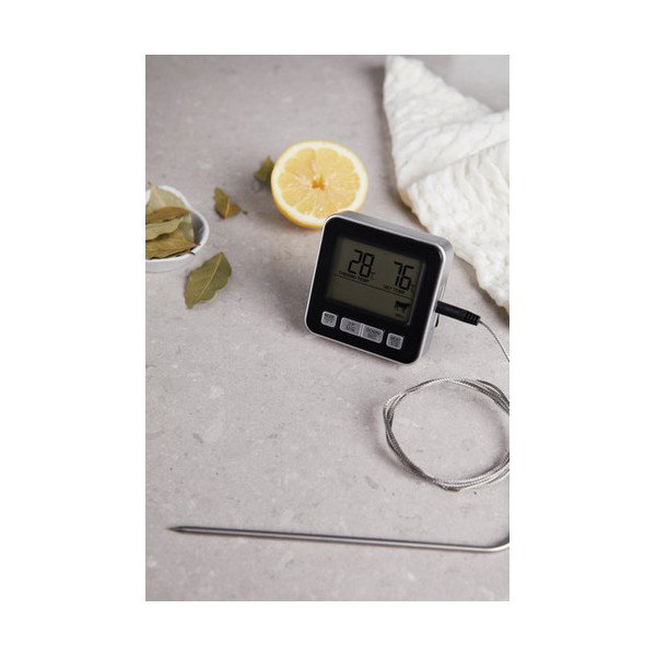Tanto si esté asando un suculento rosbif u horneando un pastel especial, este termómetro repleto de funciones resultará invaluable en la cocina, ya sea al horno, a la parrilla o al horno. La función de temporizador y la función de alarma lo ayudan a mantener el control. El termómetro también muestra Celsius y Farenheit para que pueda ajustarlo según sus necesidades. Ninguna cocina está completa sin uno.