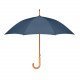 Paraguas apertura automática de 23" de pongee 190T RPET con eje, puntas y parte superior de madera. Varillas en chapado metálico negro. Mango de madera curvado con acabado natural. Cierre manual.
