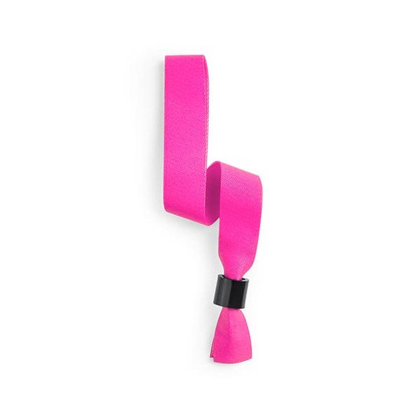 Pulsera con cuerpo acabado en suave poliéster de vivos colores. Pedido mínimo: 1.000 udes.