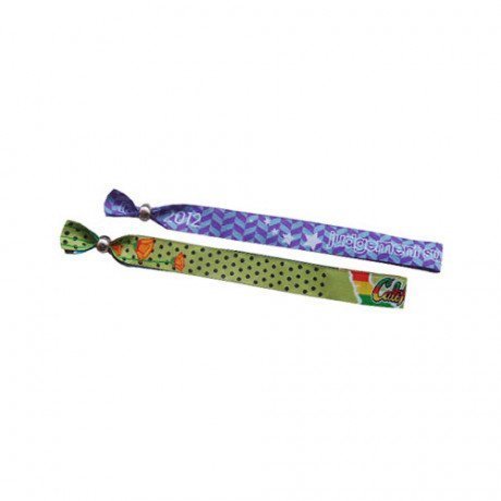 Pulsera con cuerpo acabado en suave poliéster de vivos colores.Pedido mínimo: 1.000 udes.