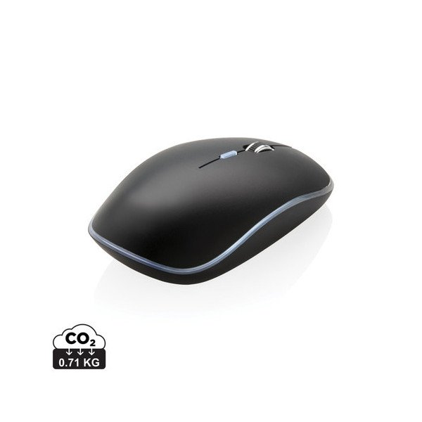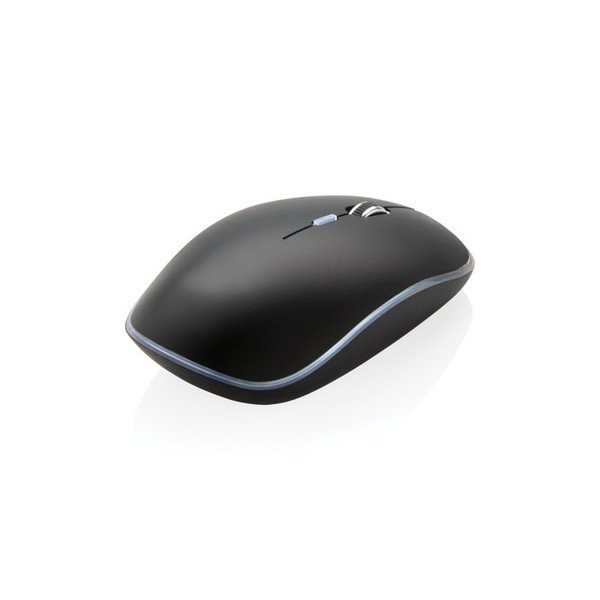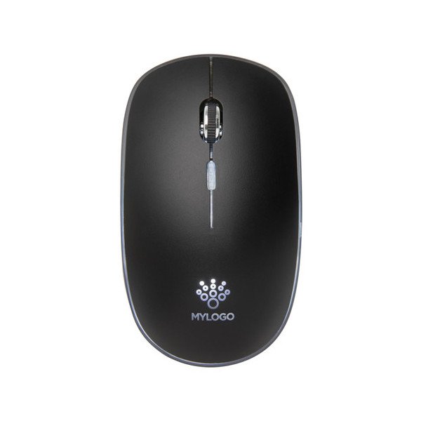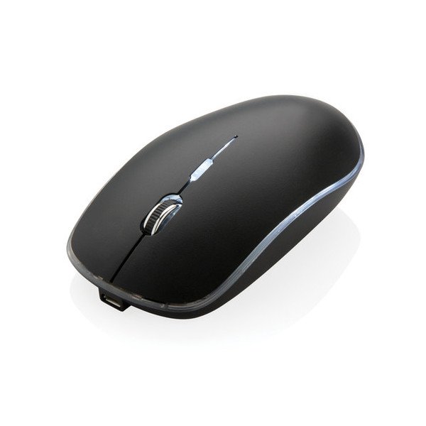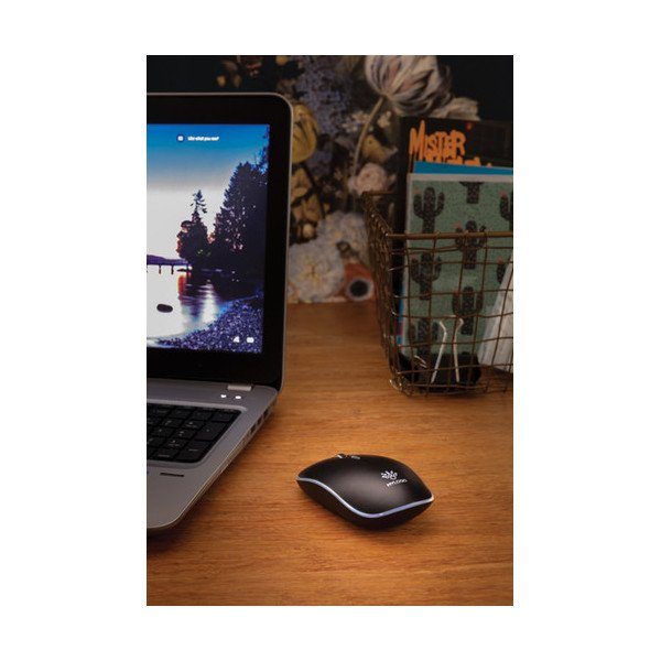 Ratón inalámbrico recargable de diseño cómodo con opción de grabar tu logo iluminado para una exposición adicional de tu marca.