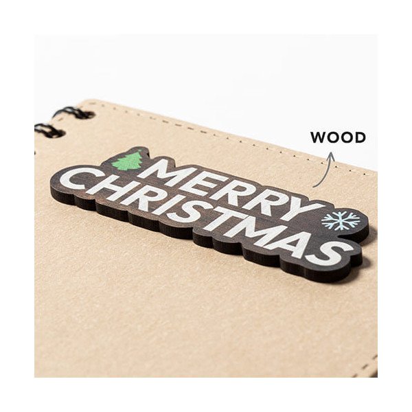 Original imán Merry Christmas fabricado en madera natural.Pedido mínimo: 100 udes.